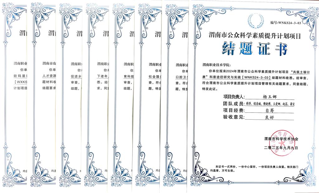 近日下发了渭南市公众科学素质提升计划项目结题证书,我院(含渭南市营养学会等)9项科普相关项目顺利结题。