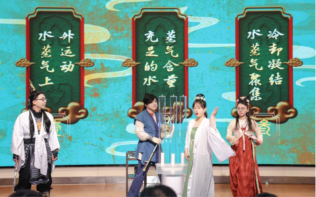 本次大赛以 “矢志创新发展,建设科技强国” 为主题,赛事严格遵循 “复赛、半决赛、总决赛” 三阶段选拔机制,吸引了全省高校、科研院所、科技型企业等单位的众多科普工作者与科学传播爱好者参与竞技。我校报送的作品《宝莲渡旱记》以经典神话《宝莲灯》为故事背景,巧妙将沉香救母的叙事与降雨原理、人工降雨技术科普相结合,通过情节演绎再现“久旱无雨”的困境,以实验演示直观呈现水汽凝结、云层形成的自然降雨机制,进而通过模拟干冰催化降雨的实验,生动阐释人工降雨的科学原理与应用场景,让抽象的气象知识变得通俗易懂、趣味盎然。