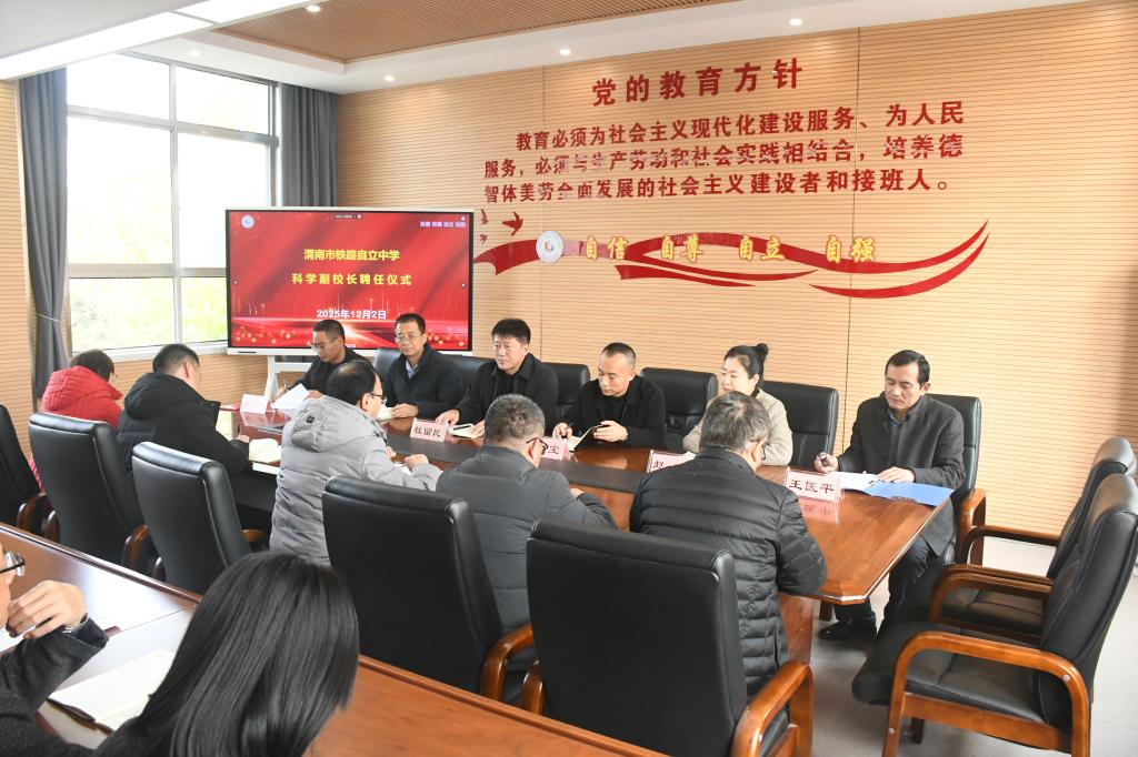 为深入贯彻落实《教育部等十八部门关于加强新时代中小学科学教育工作的意见》及《陕西省中小学科学副校长聘任与管理办法》要求,深化校地教育资源联动,推动基础教育与高等教育协同育人,12月2日下午,渭南市铁路自立中学举行了科学副校长聘任仪式,我校护理学院党总支书记王医平、科学研究处长蒋宝、项目管理科副科长赵蕊受邀出席,我校副教授何宇正式受聘担任该校科学副校长。
