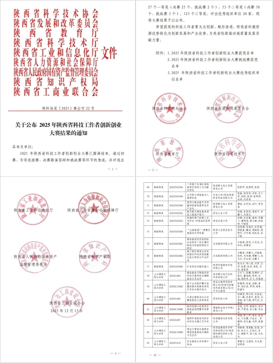 近日,陕西省科协等9家省级部门联合公布了2025年陕西省科技工作者创新创业大赛结果,我校赵蕊教师团队的《智巡先锋—边坡安全智能监测预警系统革新者》项目在全省科技型企业、科研机构、高校院所中突出重围,斩获三等奖。