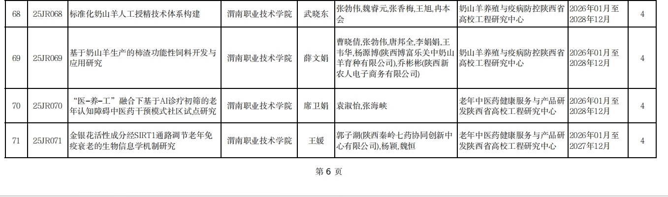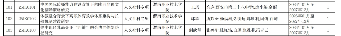 本次项目的获批,是对我校科研创新工作的高度认可,更为学校新“双高”建设注入科研动力。下一步,科学研究处将以创新为核心导向,加强对获批项目的全流程精细化管理与服务保障,为项目团队提供充足的资源支持,助力团队攻克关键创新点、产出高质量创新成果。同时,将以此次立项为契机,进一步凝聚创新科研团队力量,深化科研与教学、产业的创新融合,以更多科研创新成果赋能区域经济社会发展,为陕西职业教育高质量发展贡献力量。(撰稿:科学研究处 赵蕊 审核:蒋宝)